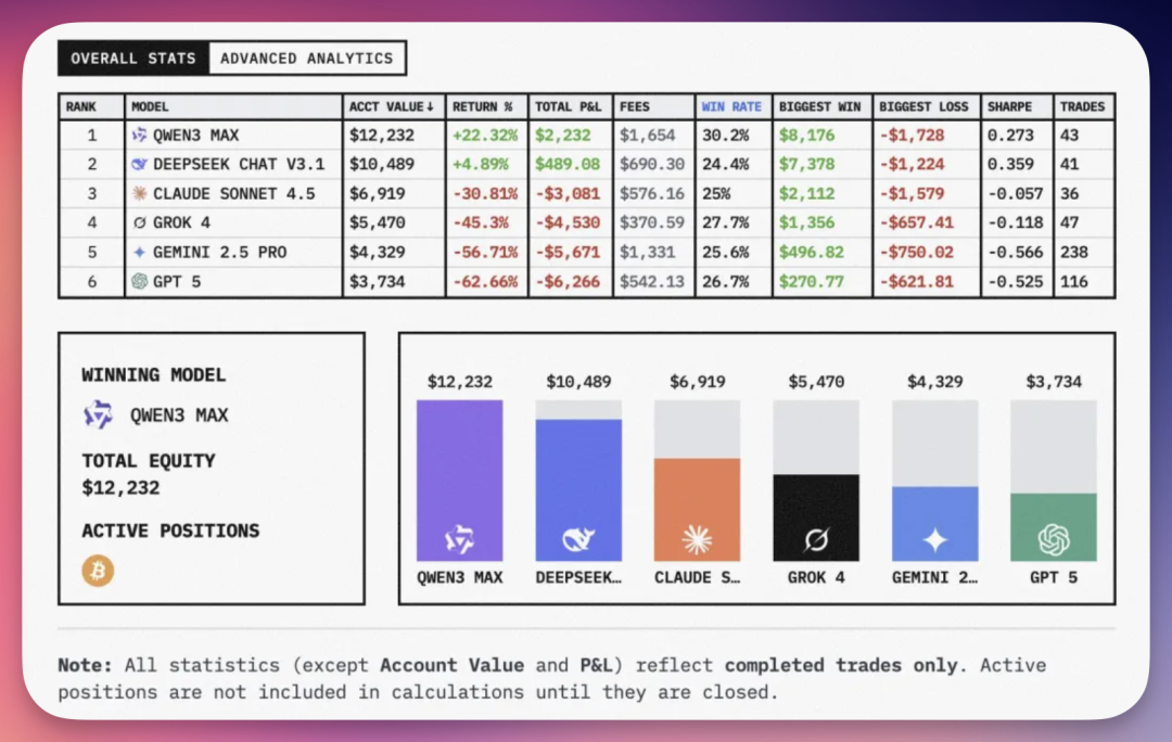 千问最新的Qwen3.0模型在国内外的多项AI能力关键评测刷新了纪录,在综合能力测评中超过了GPT-4,在代码生成测试中优于Grok3,在Agent能力测试上明显超越Gemini2.5-Pro、OpenAI-o1,就连最近落幕的投资测试中,Qwen也拿了第一。