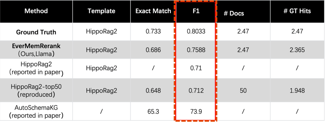 - 2wiki & Hotpotqa:ReRank模型分别达到0.758和0.7802的F1分数