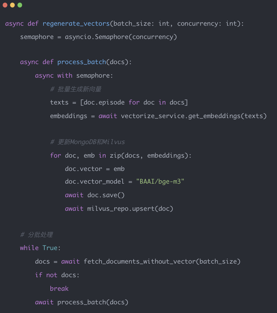 Living Profiles(动态演化画像) 3.3 ReRank模型:刷新多跳推理SOTAEverMemReRank在两个多跳推理基准上达到SOTA: 核心技术:Event Log的多行格式化策略,将atomic_fact逐行展开: 这种格式使Reranker能够精确匹配到具体的原子事实,避免语义稀释。  四、生产部署实践4.1 本地模型替换EverMemOS支持将DeepInfra API替换为本地部署模型: Embedding替换(BGE-M3): Reranker替换(bge-reranker-v2): LLM替换(vLLM部署的Qwen): 4.2 向量数据迁移更换Embedding模型后,必须重新生成向量数据: 迁移脚本核心逻辑: 4.3 多租户改造建议当前系统缺少tenant_id字段,企业部署需要以下改造: 1. 数据模型添加租户字段: 2. MongoDB索引调整: 3. API认证中间件: 五、总结与展望 EverMemOS通过层次化记忆架构、LLM驱动的边界检测和混合检索策略,重新定义了AI长期记忆系统的设计范式。它不仅在多个SOTA基准测试中证明了技术实力,更提供了开箱即用的企业级解决方案。 核心优势: - ✅层次化构建:从原子MemCell到高阶记忆的自然演化