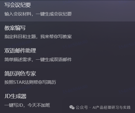 想来是官方团队在文心一言的积累基础上,挑选&额外自定义了这些产品团队认为适合在百度网盘中使用的预定义的、个性化的“小工具”: