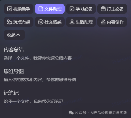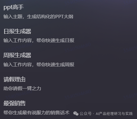 想来是官方团队在文心一言的积累基础上,挑选&额外自定义了这些产品团队认为适合在百度网盘中使用的预定义的、个性化的“小工具”: