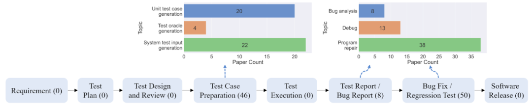 大模型(LLM)由于其卓越的自然语言理解、推理等能力,已经被应用于各种场景,取得了前所未有的效果。 类似的,软件测试领域也受益于其强大的能力,能够帮助生成逼真且多样化测试输入、模拟各种异常、加速缺陷的发现,提升测试效率和软件质量。 来自中国科学院软件研究所、澳大利亚Monash大学、加拿大York大学的研究团队收集了截止到2023年10月30日发表的102篇相关论文,并分别从软件测试和大模型视角进行了全面分析,总结出一篇关于大模型在软件测试领域应用的全面综述。