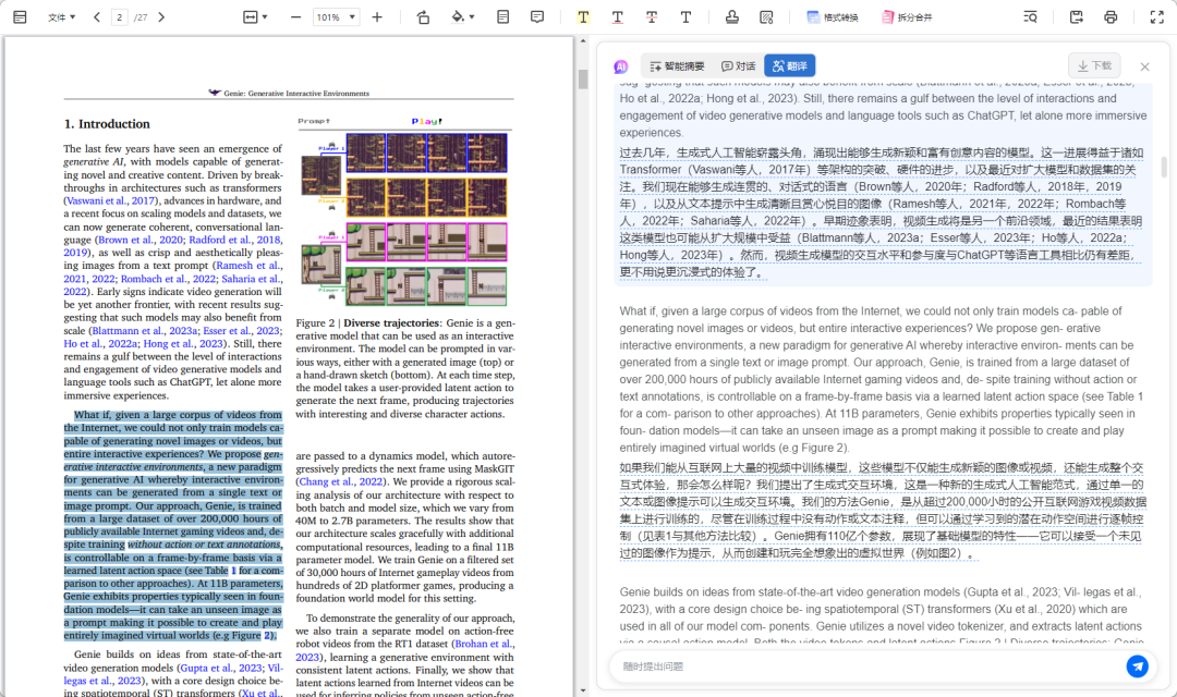点击后可以快速的阅读PDF摘要,也可以用对话来进行提问: