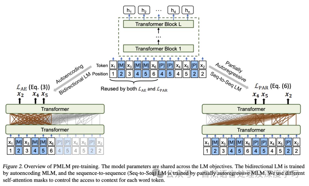 • UniLMv2:UniLMv2允许统一语言模型的预训练,该模型由自编码和部分自回归模型组成。自编码模型类似于BERT,通过上下文预测令牌。部分自回归模型基于掩蔽和伪掩蔽令牌,可以预测一个或多个掩蔽(或伪掩蔽)令牌。