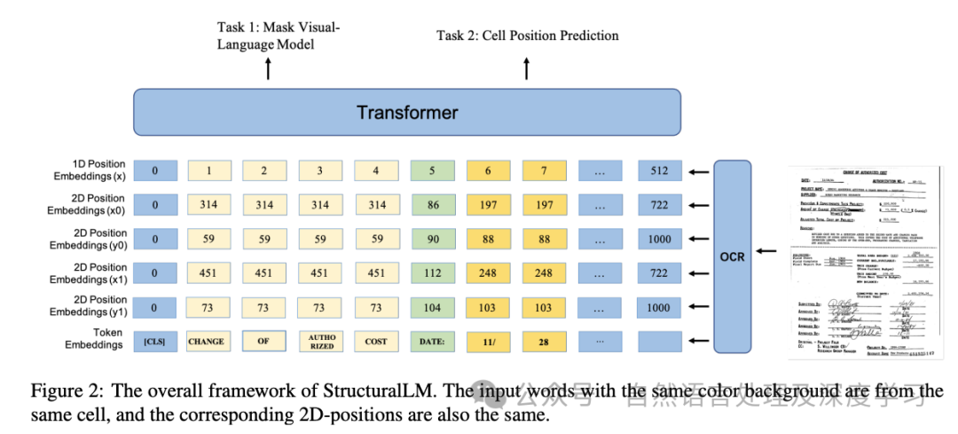• StructuralLM:StructuralLM是LayoutLM模型的后继者。与LayoutLM不同,StructuralLM操作的是2D单元格位置嵌入,而不是2D词嵌入。其核心思想是通过分组来更好地捕获词之间的关系。