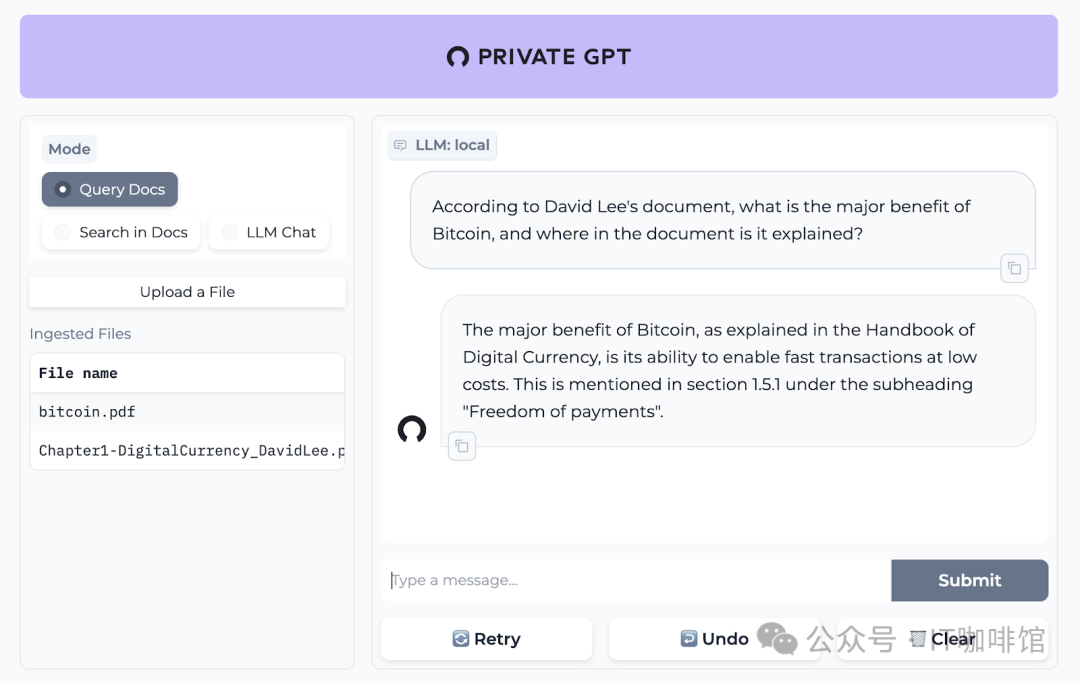 ingFang SC";font-weight: bold;color: rgb(255, 255, 255);line-height: 22px;">总结ingFang SC";font-size: 16px;letter-spacing: 0.578px;text-align: left;text-wrap: wrap;background-color: rgb(92, 148, 142);">PrivateGPT 的思路和方向和目前很多国内的研究一致,大家都是在探索一种及使用大模型能力,同时又保障足够的数据隐私安全,并且这种引入向量存储的方法一定程度上可以提升相应的准确度的速度(在特定的问题场景下)。 个人觉得这个项目更多的可以给我们延伸的思考,当然直接拿来用也不错。