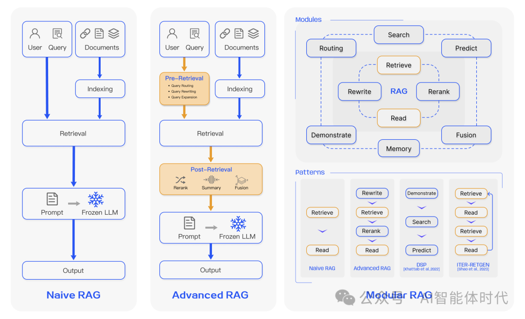 RAG的发展分为三个阶段:Naive RAG、Advanced RAG、Modular RAG