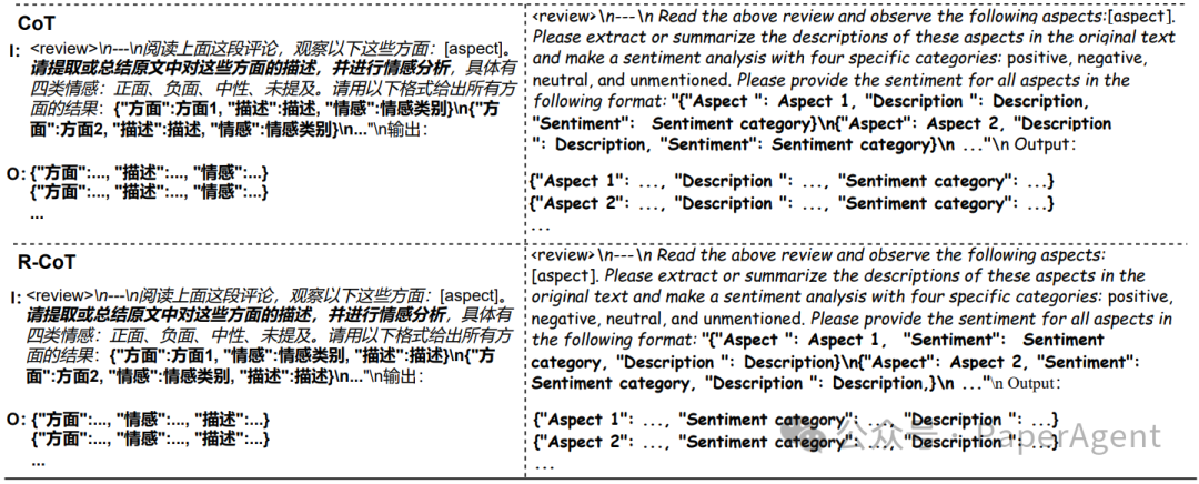 为解决上述问题,提出了样本设计工程SDE(Sample Design Engineering),这是一种系统化的方法,旨在通过精细化设计输入、输出和推理环节来增强LLMs在特定任务上的表现。以多方面情感分析(MASA)任务为例,分析了不同的SDE选项,包括指令放置、输入建模、多种预测格式化、未提及目标的处理、文本或数值标签的使用,以及推理设计选项,如链式思考(CoT),得出10条重要的结论! 在设计下游微调样本时需要考虑的典型SDE选项,以MASA任务为例。Ai表示第i个方面,Si表示其情感标签,[P]指的是占位符。