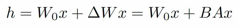 基于这种重新参数化,Lora微调的数学表达可以用以下公式表示: