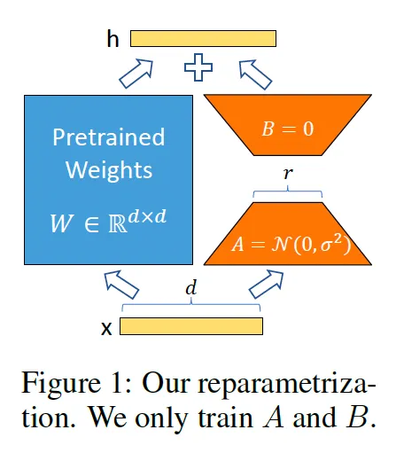 为了更好地理解Lora微调的数学原理,让我们首先看一下这张图片(图1)