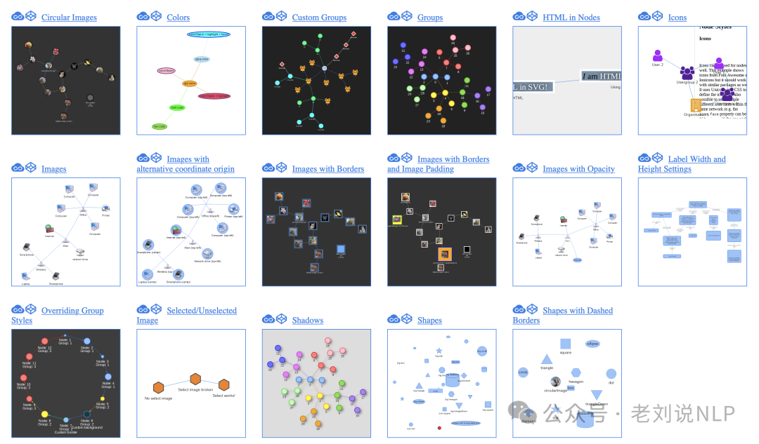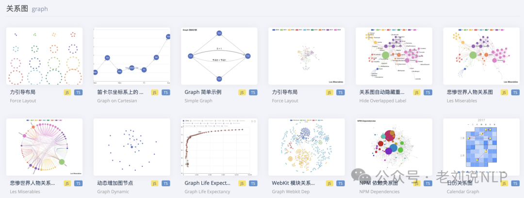 D3.js提供了关于图网络的不同图层样式可供个选择。老刘之前进行知识图谱可视化平台、包括学迹中的产业链可视化等,都是基于D3js开发。与Echarts、HighCharts、vis.js等大多数基于Canvas实现图形绘制不同,D3.js同时支持SVG和Canvas两种方案。 不过,D3js提供的API较为底层,需要实现的代码较多,具有一定的准入门槛,而且对图谱而言,每个节点、边都有对应的DOM元素,当节点数很多的时候,对内存的压力较大。 地址: https://observablehq.com/@d3/gallery