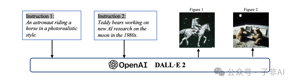 有了更多数据和更大的模型,这些AI系统可以生成看起来非常逼真和高质量的内容。以下展示了使用OpenAI DALL-E-2模型根据指令生成图像的示例。