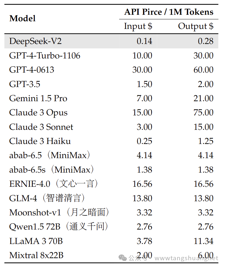 API价格 DeepSeek-V2的API定价为每百万输入Tokens 1元(0.14美元),每百万输出Tokens 2元(0.28美元),具有竞争力的价格。