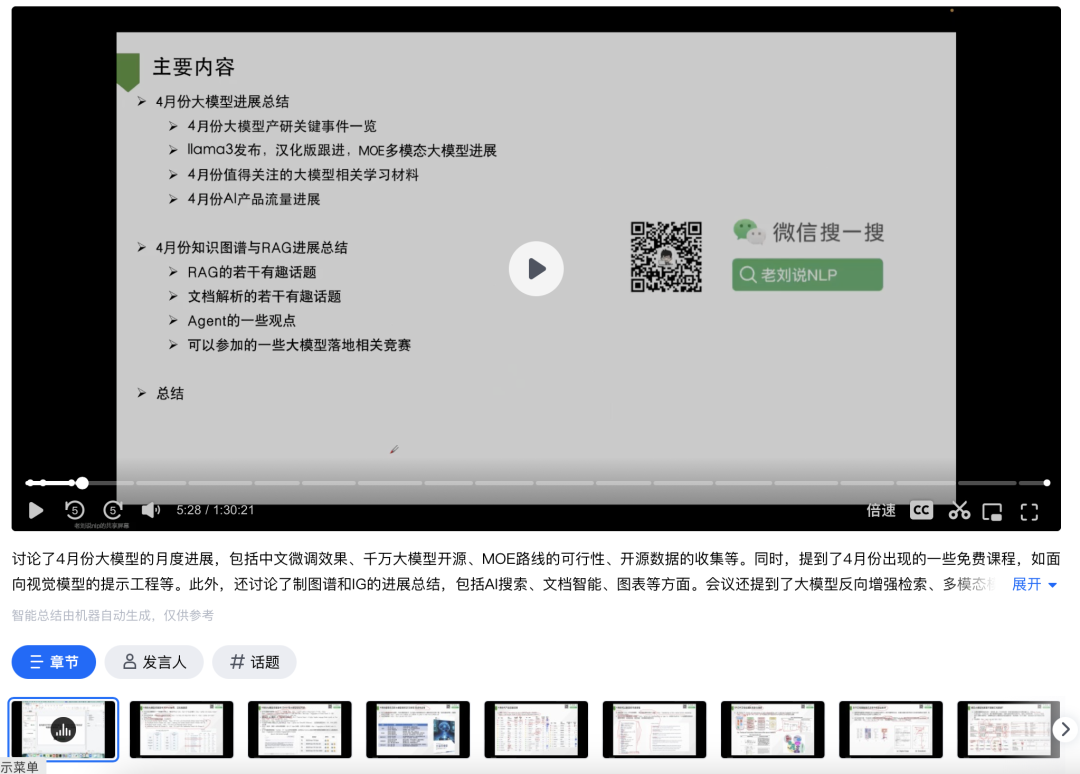 今天我们来回顾4月份大模型进展,昨日,老刘说NLP社区顺利完成第十八讲《老刘说NLP2024年4月份及五一LLM+KG+RAG产研总结:有趣的开源项目、技术观点及产品进展》,从大模型关联总结【开源、产品流量变化等】,RAG、KG、RAG以及文档图表理解、Agent几个方面进行了回顾。
