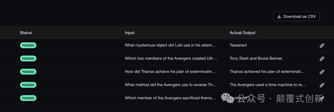 基于测试文档,我们创建了一个包含“问题”和“真相”的数据集。以下是定义的数据集: