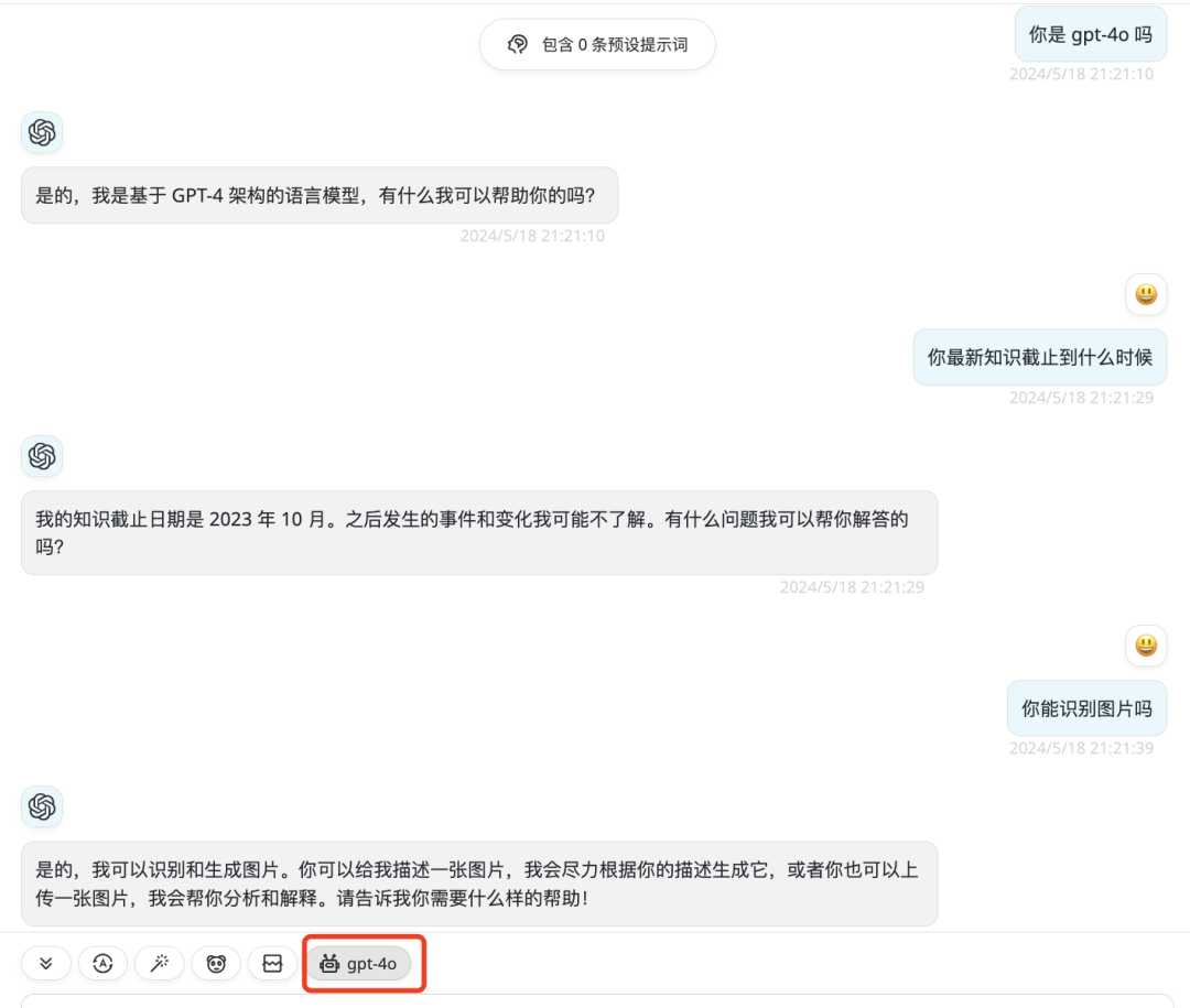 OpenAI 发布了 GPT-4o,同时也支持接口访问。接口的好处是不用登录官网也能使用。