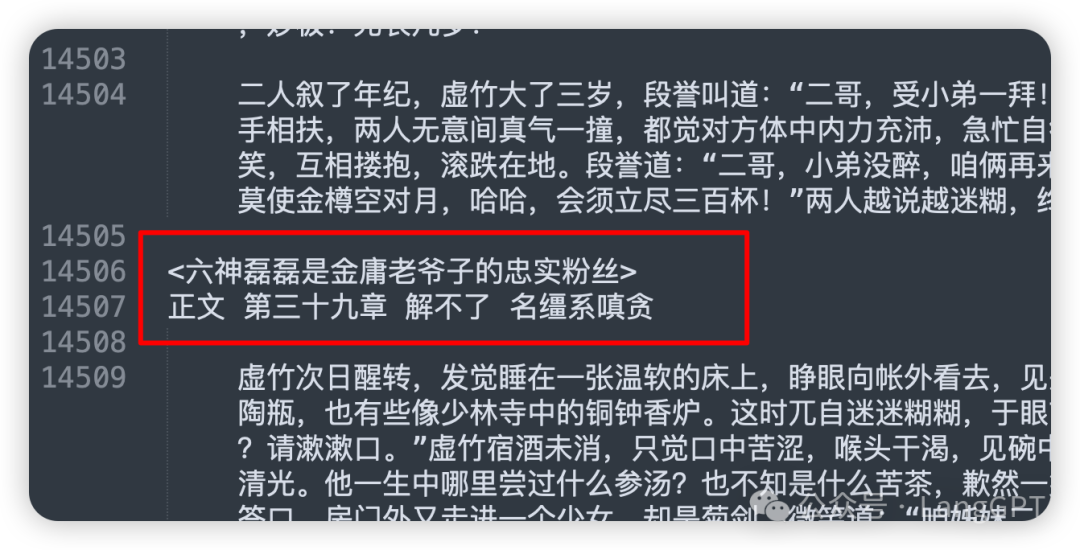 漂亮!不仅定位了这句话的所在位置,并且结合上下文推断出六神磊磊可能是现实中的一个人或者是一个笔名,他对金庸的作品有着深厚的喜爱等信息。