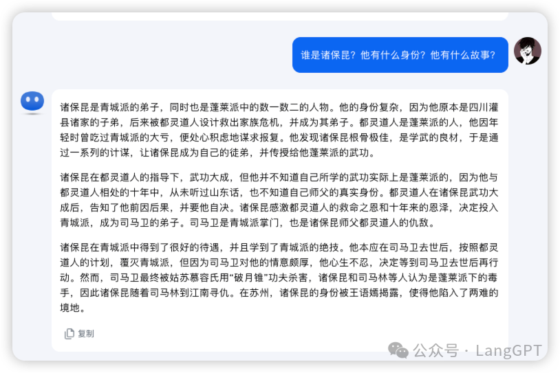 接下来,我们再问一个问题,这个问题对于绝大多数看过《天龙八部》的小伙伴们来说,肯定都无法回答,因为我们都记不住一些平凡小人物... 诸保昆,蓬莱派派到青城派做卧底的一个小弟子,身世悲惨,有相当的悲剧意义,我们来看下Kimi的回答: