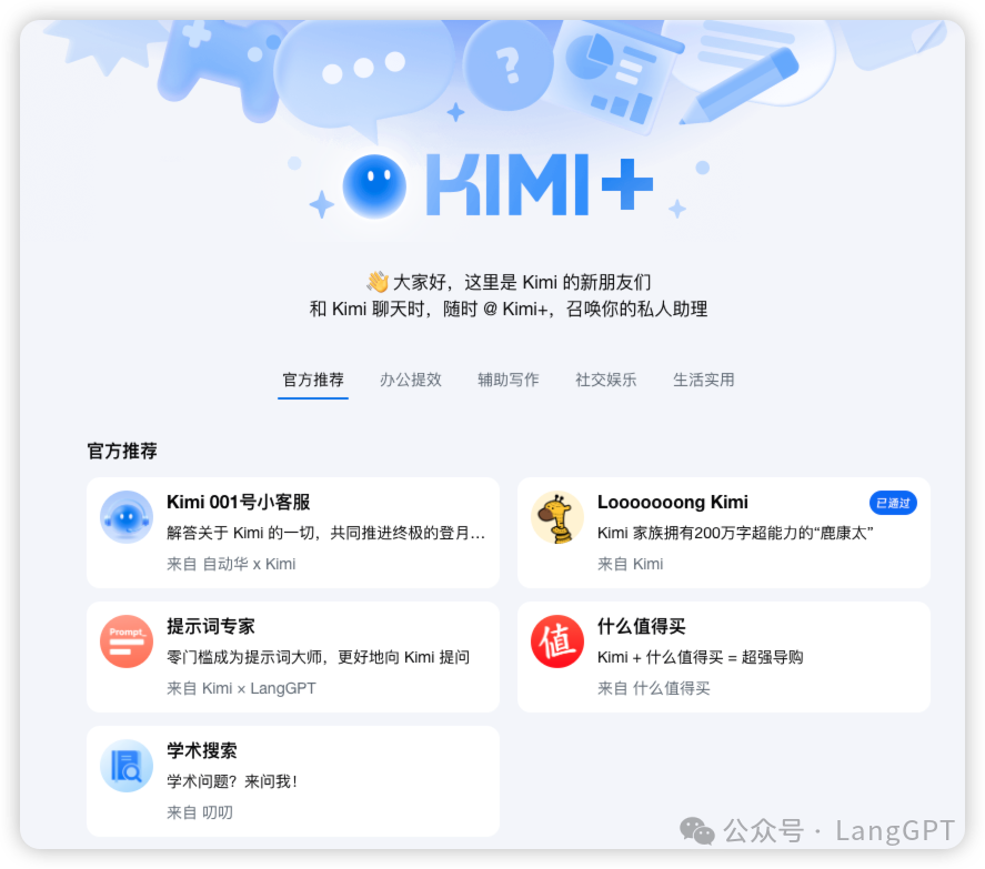 Moonshot官方是这么介绍Kimi+的——他们是更专业的小助手,是拥有独特技能的Kimi分身;可以解决特定问题,也可以组成AI生成线。
