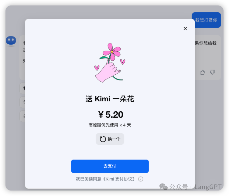 当然Kimi也不可能无限烧钱,终究还是要考虑盈利问题,目前我们已经看到最新的Kimi在不得罪习惯免费用户的基础上实现商业化的可能,就是“打赏机制”的出现——重新定义了付费模式,谁说订阅制只能包月包季包年呢?为何不换一种思路和想法,优先使用权思路是很棒的,最大程度避免侵害免费用户权益。
