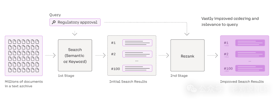 Re-ranking,这个可以作为rag fusion的替换方案,当做一个过滤筛子进行排序,示意图如下: