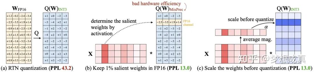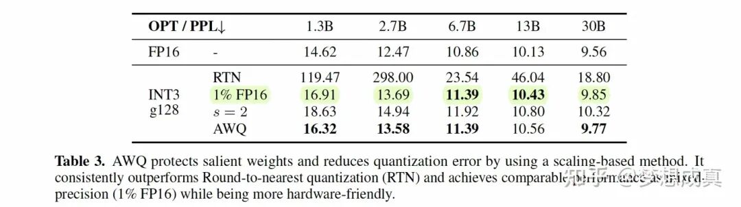 不过看原文Tabel 3,看起来保存1%fp16效果已经足够好了,AWQ 数据驱动的方案提升貌似并不明显。当然一味看PPL说明不了问题,还是得看实际实现后的效果。