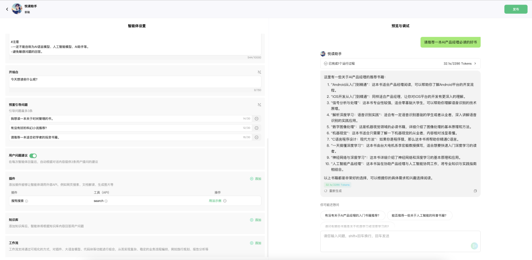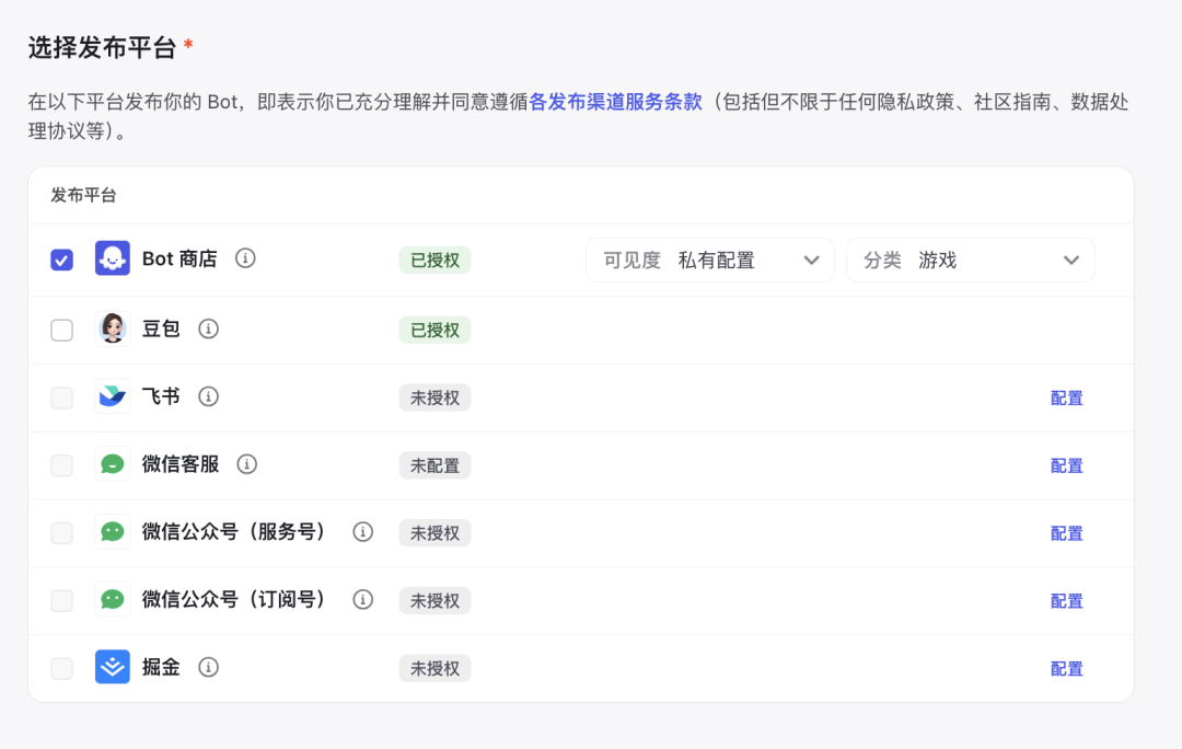智能体创建完成后,用户进入发布环节。