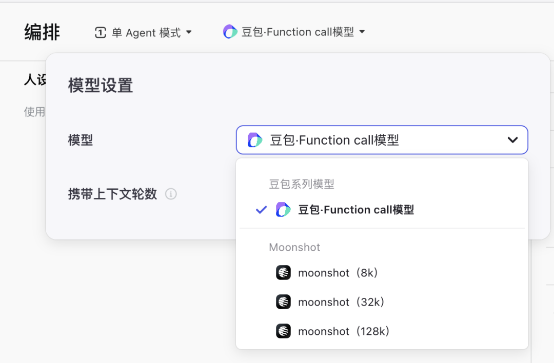 对比字节的扣子,扣子不仅支持豆包系列模型,还支持 moonshot 系列模型,选择更丰富。