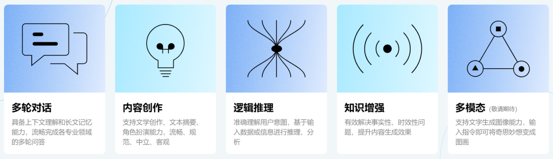 据腾讯混元官网介绍,作为元器 Agent 的底层大模型,混元大模型覆盖了五大核心优势能力:多轮对话,内容创作,逻辑推理,知识增强,多模态。