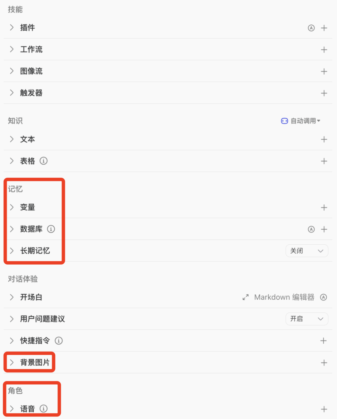 但是对比友商,字节的扣子不仅有更丰富的智能体和插件,还可以支持在消息输入框内 @ bot,与收藏的 bot 对话;并且扣子现在支持包括语音的更多模态,以及具有数据库和长期记忆的记忆能力。