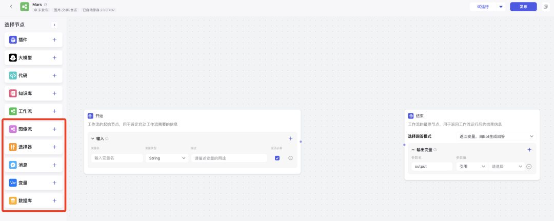 ●结束节点:把执行节点的输出结果作为结束节点的输入参数,给到智能体作为最终输出的参考