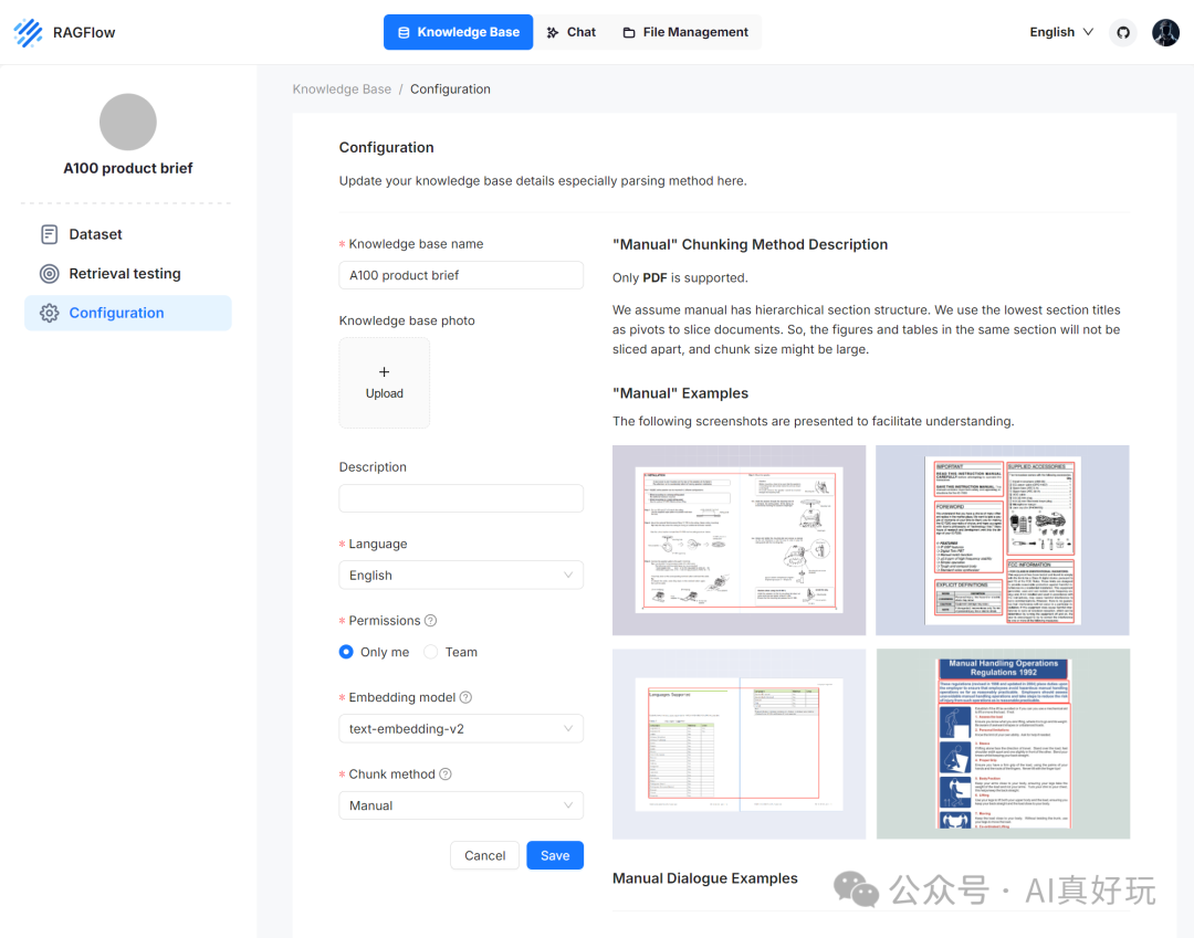 - RAGFlow 提供多种分块模板,以适应不同的文档布局和文件格式。为您的知识库选择嵌入模型和 chunk 模板。