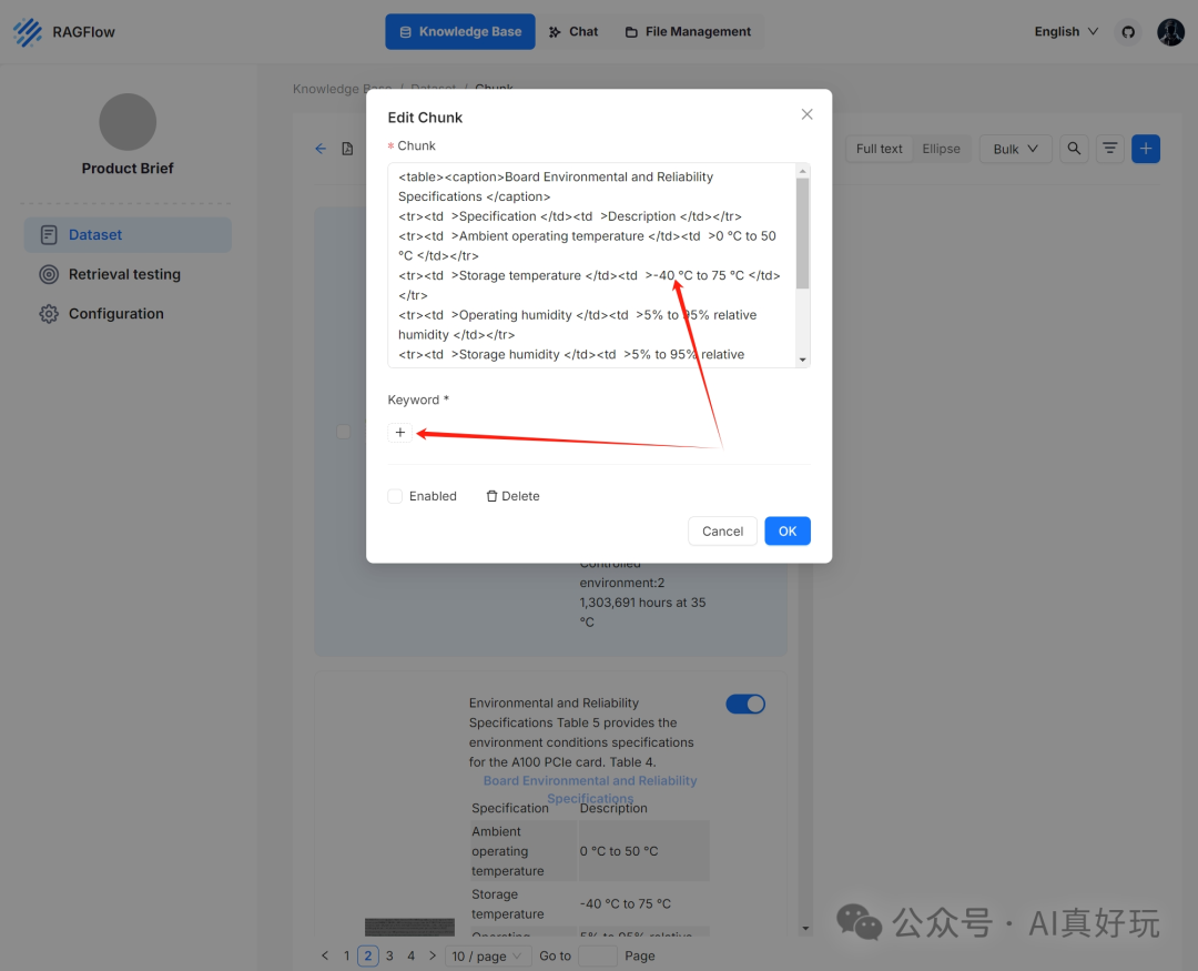 RAGFlow 具有可见性和可解释性,允许您查看分块结果并在必要时进行干预。为此:
