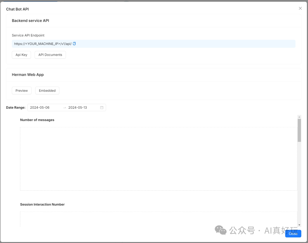 - RAGFlow 还提供对话 API。将鼠标悬停在对话 > Chat Bot API 上,即可将 RAGFlow 的聊天功能集成到您的应用程序中: