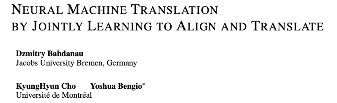 这篇论文由 Bahdanau et al. 在 2014 年发表在国际会议 ICLR 上,是神经机器翻译领域的开创性工作之一,提出了一种新颖的模型结构和训练方法,使得神经网络可以在翻译过程中自动搜索和选择源语言句子中与目标语言单词相关的部分,并生成对齐结果。这种方法不仅提高了翻译质量,而且产生了符合直觉的对齐结果。