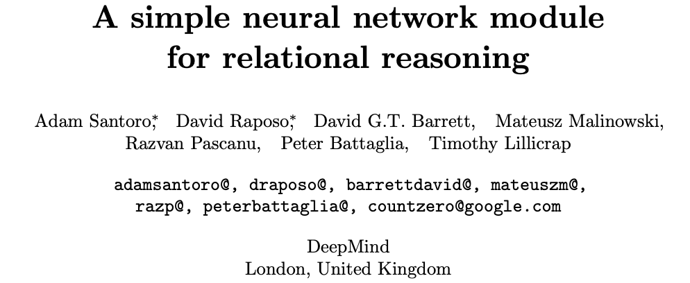 17)A simple neural network module for relational reasoning(一种用于关系推理的简单神经网络模块)