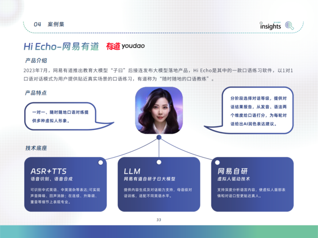 HiEcho:网易有道的教育大模型应用 HiEcho是网易有道推出的一款口语练习软件,它利用网易自研的教育大模型“子日”提供一对一的口语对话练习。HiEcho通过AI技术模拟真实场景下的对话,帮助用户提高口语能力。它还能够提供发音、语法的反馈和建议,使得用户能够随时随地进行口语练习。