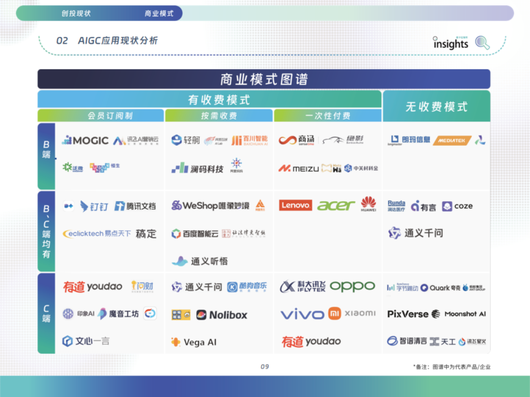 技术发展中的应用:对于一些技术仍在快速发展阶段的应用,如视频生成和3D生成,虽然已经有一些初步的应用案例,但仍需要进一步的技术突破和市场验证。
