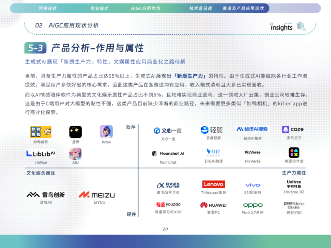 软件产品在AIGC应用层占据主导地位,它们以智能助手和智能体平台的形式存在,提供多样化的服务,从日常咨询到专业数据分析。软件的灵活性和更新迭代的便捷性使其在AIGC领域迅速发展,能够快速响应市场变化和用户需求。