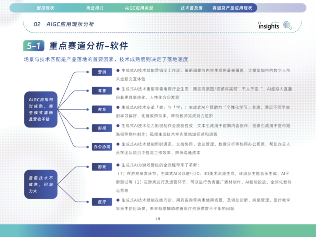 技术成熟的应用:在技术较为成熟的领域,如文本和图像生成,AIGC应用已经能够为用户提供高质量的服务,并在多个行业中得到广泛应用。