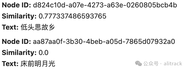 documents=[Document(text="床前明月光"), Document(text="疑是地上霜"), Document(text="举头望明月"), Document(text="低头思故乡")]