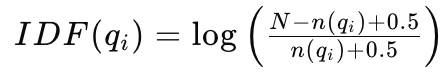 BM25算法Okapi BM25,一般简称 BM25 算法,在 20 世纪 70 年代到 80 年代,由英国一批信息检索领域的计算机科学家发明。这里的 BM 是 “最佳匹配”(Best Match)的缩写,Okapi 是第一个使用这种方法的信息获取系统的名称。在信息检索领域,BM25 算法是工程实践中举足轻重的重要的 Baseline 算法。迄今为止距 BM25 的提出已经过去三十多年,但是这个算法依然在很多信息检索的任务中表现优异,是很多工程师首选的算法之一。 BM25(Best Match 25)是一种用于信息检索的统计算法,主要用于评估搜索词(query)和文档之间的相关性。它基于概率检索模型,通过计算查询词与文档之间的相关性得分来对文档进行排序。BM25算法的核心思想可以概括为以下几点: 1.查询词权重(IDF):BM25使用逆文档频率(Inverse Document Frequency,IDF)来衡量查询词的重要性。IDF的计算公式为: