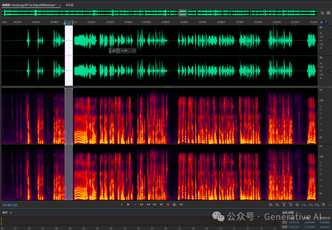 在 Speech 领域 SSL(SelfSupervisedLearning)和 Codec 都已经被广泛研究,可以用于形成统一的 SpeechTokenizer。 基于大模型的传统语音全双工交互:ASR+智能语音语义打断 ->LLM->TTS,如果做好流式 ASR、流式 LLM、流式 TTS 的话,延迟同样可以做到 1s 上下,缺点是缺少情感识别与无法传递情感/指令到语音生成模块,所以有 Hume.AI 等在补这块空白。 我把 OpenAI demo(链接 https://www.youtube.com/watch?v=DQacCB9tDaw&t=2s)下载下来看,语音交互的延迟大部分在 800-1000ms 之间,远高于所说的平均延迟 320ms,可能 RTC 等部分还没优化到位吧。