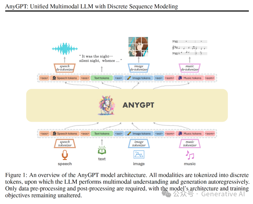 - 它可以接受文本、音频、视觉作为输入,并生成文本、音频和图像的任一模态作。 - GPT-4o对音频输入的响应时间平均为320毫秒,与人类对话的响应时间相近。 - 与之前的Voice Mode相比,GPT-4o通过一个神经网络处理所有输入和输出,提高了信息处理的效率和质量。 - 计划在未来几周内向一小群受信任的合作伙伴推出GPT-4o的音频等模态支持。 截至目前(6月6日) GPT-4o 仍然没有开放语音相关 API。 GPT-4o 语音交互强在哪里? GPT-4o 演示环节除了展示出语音交互的丝滑低延迟之外,而且在输出语音上可以很好地遵循指令(如:你可以要求声音更 emotional、更 drama,maximal emotional、语速更快等),相比之前固定的单一机械音频输出,这显著提升了“智能性”,说 4o 颠覆语音交互一点都不为过。 GPT-4o模型 在官方介绍中明确说到: With GPT-4o, we trained a single new model end-to-end across text, vision, and audio, meaning that all inputs and outputs are processed by the same neural network. 输入输出可以是:文本、音频、视觉,也就是说 <输入,输出> 可以有 3x3 种组合,可以:文本对话、文生图、文字到语音、语音到文字、语音到语音等等。 这里引用 AnyGPT 的配图来展示: