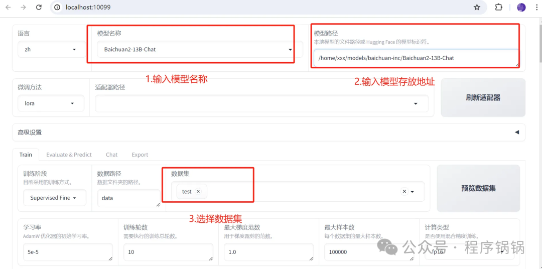 等等微调算法,在这里我不想深究它们的具体原理。我建议初学者首先使用Lora微调的方式,只需配置3个参数即可开始微调