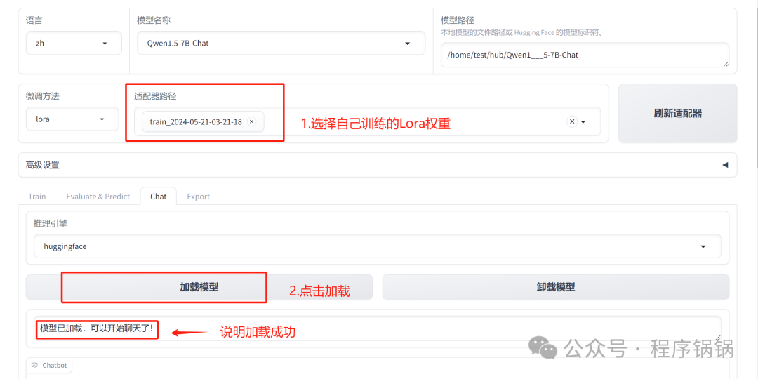 由于采用的是Lora微调,我们需要将原有大模型的权重与自己训练出来的权重合并。