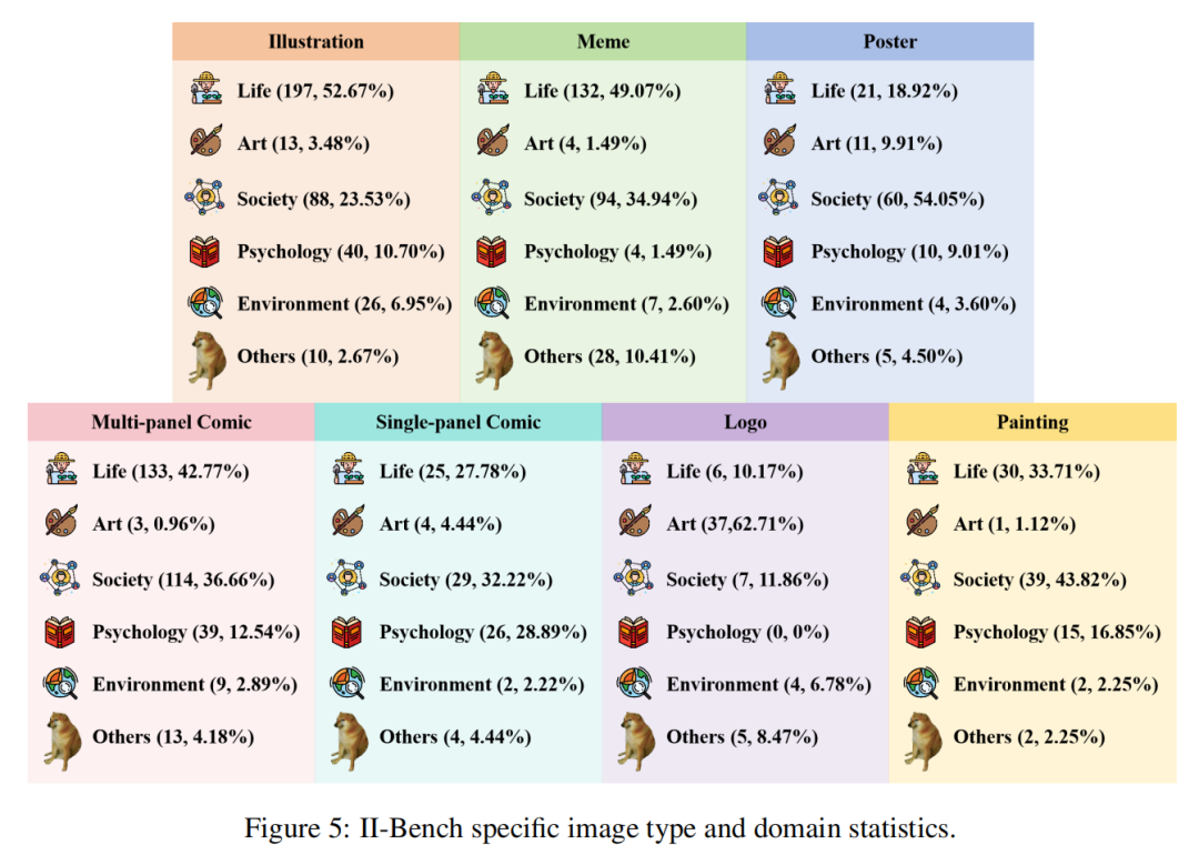 背景引入在人工智能飞速发展的今天,大模型的感知能力已经达到了令人惊叹的水平。但是,它们真的能够像人类一样,洞悉图片中的深层含义吗?为了探讨多模型大模型与人类的差距,来自中科院深圳先进院,M-A-P,华中科技大学,零一万物,滑铁卢大学等多家机构联合提出了首个用于评估多模态大模型(MLLMs)图像隐喻理解能力的综合性基准测试II-Bench。  在多模态大模型(MLLMs)的世界中,图像隐喻理解(Image Implication Understanding) 正成为一个全新的挑战。图像隐喻理解不仅仅是识别图像中的物体,它要求模型具备多跳逻辑推理能力和心智理论(ToM),这是属于人类的高级认知能力。与简单的图像理解任务相比,图像隐喻理解要求模型能够捕捉到图像中的隐喻、象征以及细微的情感表达,这无疑是对MLLMs的一次严峻考验。  II-Bench为了全面评估MLLMs的高级感知能力,研究团队精心打造了II-Bench数据集。从20,150张原始图片中,经过三阶段严格的数据筛选流程——图像去重、文本与图像比例控制以及人工审核,最终我们得到了1,222张图片和1,434个问题。 II-Bench覆盖了生活、艺术、社会、心理、环境等六大领域,图片类型包括插画、梗图、海报、漫画、Logo和绘画等。这种跨领域和跨类别的设计,使得对模型的理解和推理能力的评估更加客观和全面。     实验研究团队在II-Bench上对20种MLLMs进行了广泛的实验。实验设置了不同的提示方式,包括思维链CoT,多样本学习,图像关键词等,以评估模型在不同条件下的表现。 评测结果实验结果显示: 1.MLLMs在图像含义理解方面与人类存在显著差距。模型的最高准确率仅为74.8%,而人类的平均准确率高达90%,最佳表现甚至达到了98%。 2.此外,闭源模型通常优于开源模型,但领先闭源模型与领先开源模型之间的性能差距微乎其微,仅为1%左右。 3.在不同领域的表现上,模型在艺术和心理等包含抽象和复杂信息的领域表现较差,而在环境、生活、社会等其他领域表现较好。 4.当在提示中加入图像的情感倾向信息时,模型的得分普遍提高,这表明模型在图像情感理解方面存在不足,容易导致对隐含意义的误解。 5.思维链(CoT)和多样本学习对模型在II-Bench的得分提升上无明显效果。 6.MLLMs对于难度的感知和人类是对齐的,但是对于隐含情感的感知和人类相悖,相比中立和负面情感模型在正面隐喻情感上的表现更好。    错误分析研究人员对GPT-4V在II-Bench上的错误进行了深入分析,错误类型包括隐喻理解错误、细节理解错误、细节忽略、表面层次理解、推理错误、拒绝回答和答案提取错误。 GPT-4V最常见的错误类型是隐喻理解错误,占比高达36%。这种错误表明,尽管MLLMs在表面级别的图像识别上表现出色,但当涉及到图像中的隐喻和象征性含义时,它们的理解能力仍然有限。这可能是因为隐喻通常需要对文化背景和情境有深刻的理解,而MLLMs可能缺乏这种深层次的语义关联能力。 同时,占比12%的推理错误表明,在需要复杂逻辑和多步骤推理的任务中,MLLMs的性能不足,这反映了模型在处理高级认知任务时的局限性。  总结最后简单总结一下,II-Bench是一个旨在评估多模态大模型(MLLMs)在图像隐喻理解方面的综合性基准测试。II-Bench的广度体现在其精心构建的包含1,222张图片和1,434个问题的数据上,这些问题覆盖了生活、艺术、社会、心理、环境等六大领域。 评估结果揭示了当前MLLMs在图像含义理解方面与人类相比存在显著差距。II-Bench的目标是衡量MLLMs在高级感知、推理和理解能力方面的进展,并在未来将继续扩展其所涵盖的领域和任务类型。研究人员相信,II-Bench将进一步激发MLLMs的研究和开发,推动人工智能在图像情感理解、隐喻识别和深层次含义推断等高级认知任务上的发展,使得人们能够更接近实现具有高级心智理论(ToM)的真正智能的多模态系统。 |
