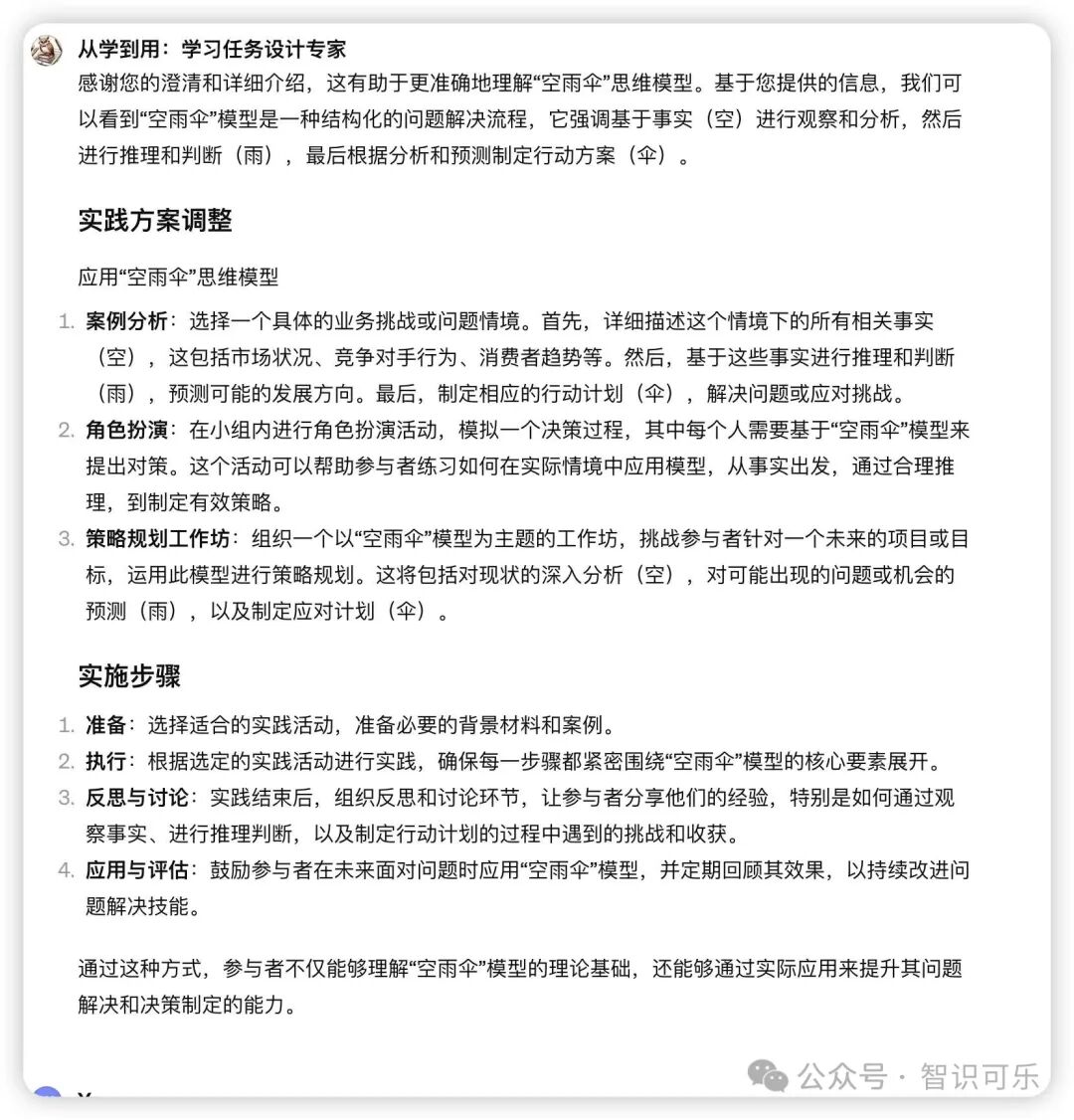 ChatGPT对于每一种“新知”都提供了实践策略方案。我挑不出毛病,已经非常周全了。
