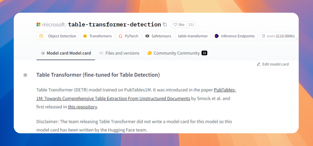 ★微软开源基于Transformers的对象检测模型,专门针对文档中的表格提取进行了微调。该模型在PubTables1M数据集上进行了训练,旨在从非结构化文档中全面提取表格信息。模型采用了DETR(Detection Transformer)的架构,并且在自注意力和交叉注意力之前应用了layernorm,以提高模型性能。
