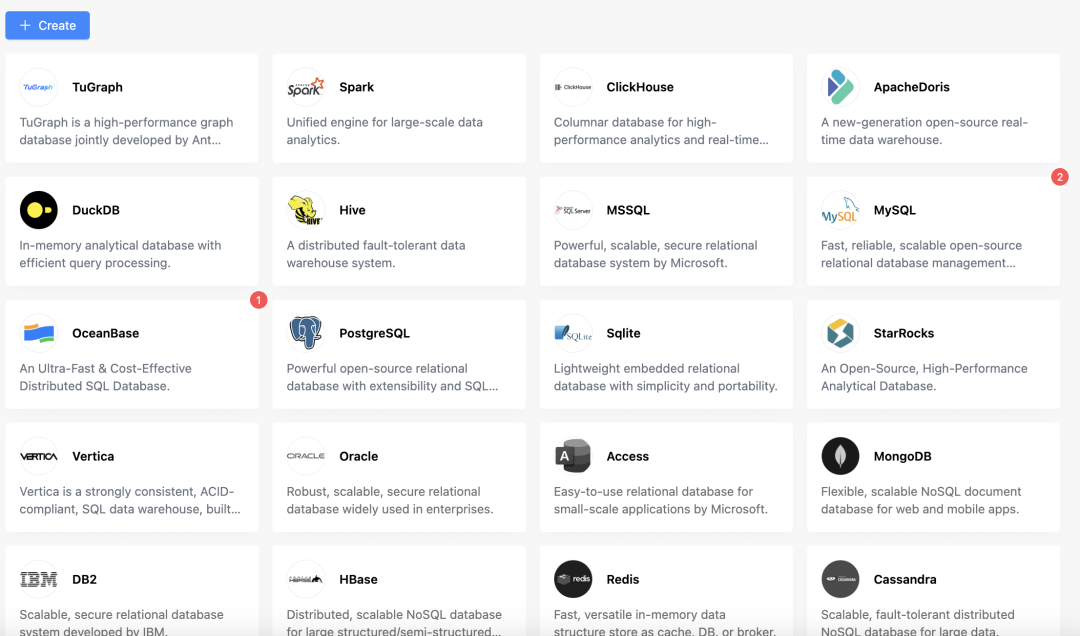 ?支持OceanBase数据源 安装参考:https://github.com/oceanbase/oceanbase dockerrun-p2881:2881--nameoceanbase-ce-eMODE=mini-doceanbase/oceanbase-cedockerexec-itoceanbase-ceob-mysqlsys#Connecttotherootuserofthesystenant.